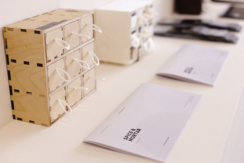 SPICE + MORTAR — это настраиваемая модульная система, с помощью специального сайта-конструктора каждый пользователь может сам выбрать размер и материалы, количество и типы модулей, которые ему необходимы. На данный момент доступны два модуля — стандартный контейнер для специй и ступка для измельчения. В дальнейшем планируется разработка новых модулей, в том числе и для жидкостей.