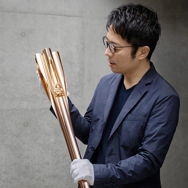 Дизайнер использовал технику экструзии (продавливание вязкого расплава материала или густой пасты через формующее отверстие). На выходе получился 71-сантиметровый факел в цвете «розовое золото», который отсылает к одному из национальных символов Японии — цветку сакуры. Также в факелах, как и в чаше с олимпийским огнем, используется водородное топливо.