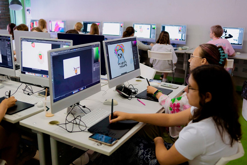 • Получают базовые навыки работы в Adobe Photoshop, Illustrator, After Effects и создают собственные диджитал-коллажи и анимацию, монтируют видео.