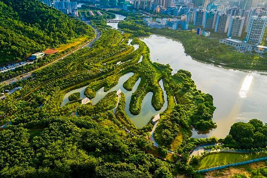 В 90-е годы образовалась компания Turenscape, руководитель которой — профессор Ю — начал продвигать в проектах компании более научный подход к проблеме воды в городе. С тех пор они сделали сотни проектов как большого, так и маленького масштаба, которые включали в себя: распечатывание и озеленение берегов рек, включение их в городскую среду, устройство биоплато, меандрирование русла для замедления стока и очистки воды, устройство островов и заводей».