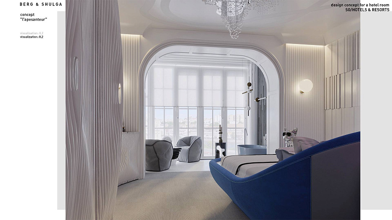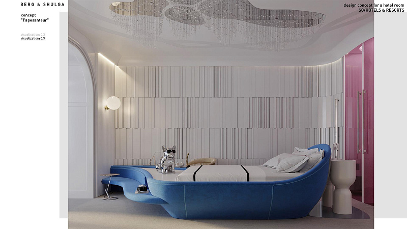 Проект выпускников БВШД занял 2 место. Ольга Берг и Оксана Шульга вдохновлялись творчеством Maison Rabih Kayrouz, чьи характерные черты и цветовая палитра легли в основу предложенной концепции дизайна интерьера гостиничного номера.