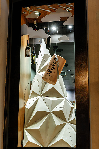 Для привлечения внимания были выбраны яркий цвет и масштаб. Так появилось крыло, окрашенное в фирменный цвет SimpleWine. Для объема и глубины — облака, а для равновесия — гнездо из веток, окрашенных в металлический цвет, в котором лежат бутылки с новинками. Проект для меня был очень интересным, значимым. Благодаря куратору программы Елене Бабкиной, я смогла перешагнуть за границы собственных стереотипов и создать классную идею».