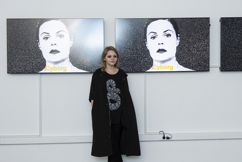 Работа Арины представляет собой видео-инсталляцию, которая переносит зрителя в пространство, где телеведущая Екатерина Андреева с трех экранов начинает программу «Время». Героиня ведет свое повествование, проводя историческую перспективу от богинь, королев и ведуний к себе — женщине-киборгу. История, которую через визуальные сигналы она транслирует на экраны, рассказывает о двух сконструированных обществом образах женщины, которые в конце сливаются в единую фигуру, способную предложить миру альтернативную структуру языка — поэзию. Через этот язык женщина-киборг может не только передавать слова окружающего общества, но и выражать себя. Поэзия главной героини рождается из переосмысления определения слова «любовь», проводя параллель с текстами Белл Хукс и культовым фильмом «Алфавиль» Жан-Люка Годара. И именно любовь становится основой новой языковой структуры.