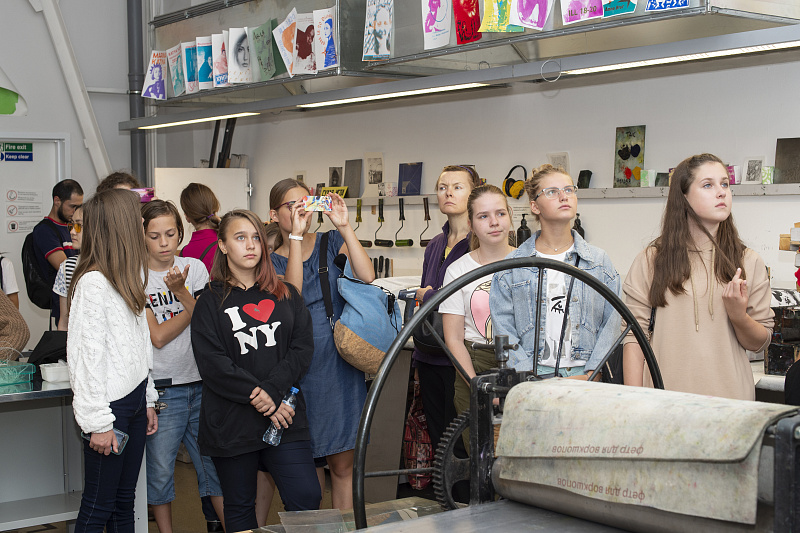 Во время экскурсии по БВШД ребята посетили арт-мастерские, дизайн-студии, познакомились с ресурсной базой Школы и узнали про долгосрочные программы для школьников ArtsCool.