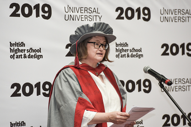 В этом году церемония проходила в ГМИИ им. А.С. Пушкина в окружении образцов скульптуры Возрождения. Директор Британской высшей школы дизайна Екатерина Черкес-заде и декан британских программ БВШД Тим Симмонс выступили с приветственной речью, а дипломы выпускники получали из рук кураторов программ.