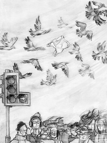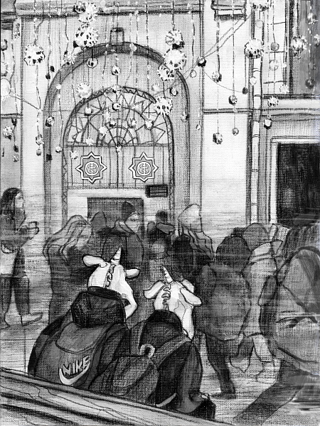 Узнав про сёнрю, я была в шоке. 700% попадание в сердце. Мне было несложно, потому что это то, чем, оказывается, я уже занималась. В течение жизни, прогулок по городу у меня набралось достаточно фотоматериала и каких-то весёлых наблюдений. Сложно было отсеять лишнее и выбрать действительно достойное внимания. От чего-то я так и не смогла отказаться, поэтому работ вышло больше 5. Я рефлексировала по поводу выбранного сюжета, и пришла к выводу, что это любовь к Москве — от её парадных улиц с туристами до маленьких скромных двориков спальных районов, что таят в себе не меньше чудес и красоты.