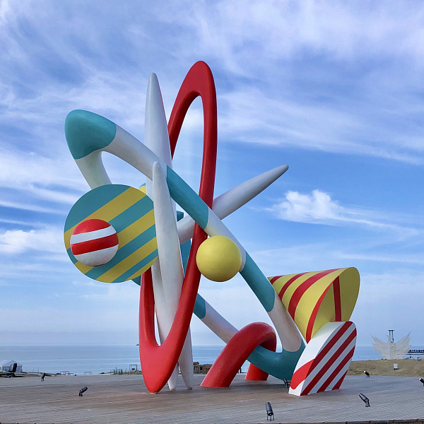 Для нас «Юла» — это энергия, которая в своей пиковой точке достигает неимоверных высот и застывает для зрителя в самом динамическом проявлении. Габариты объекта 4х5х6 м + 13метровый подиум. Вес — около 8 тонн.
