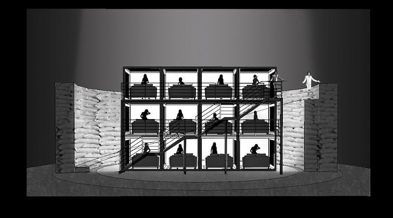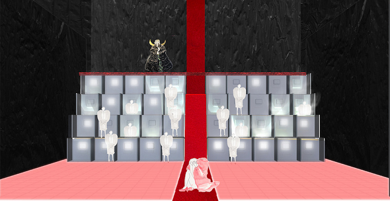 В рамках курсового проекта студенты работали над авторской интерпретацией пьесы Еврипида «Вакханки». Всего за 4 недели они создали свои первые макеты и первую разработку сценографии для большой сцены.