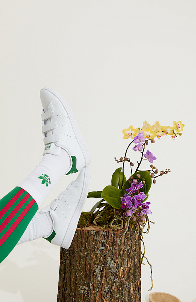 Проект приурочен к выходу новая экологичной линейки легендарных кроссовок Adidas Stan Smith Eco. Они выполнены на 50% из переработанных материалов и украшены изображениями планеты и цветов. Все это позволяет по-новому взглянуть на то, какой может быть экологичная обувь.