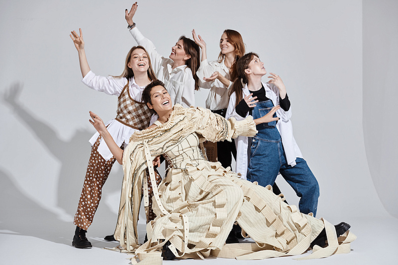 «С момента оглашения списка групп для этого проекта, мы поняли, что это будет нечто нестандартное, что-то, что мы еще никогда не делали. Мы все понимали настроение и эмоцию, которую должен излучать человек, презентующий наш проект перед камерой — яркая индивидуальность, артистичная, единственная в своем роде девушка. У нас был четкий образ персонажа с короткими волосами, которые не отвлекали бы от детальной спины топа и рукава. Она обязательно должна быть высокой, чтобы длинные и объемные штаны не сковывали движения, и со сногсшибательной харизмой, чтобы индивидуальность девушки не терялась в сложных деталях и текстурах гармента. Так предложение о съемке для студенческого проекта Британки было отправлено Ирине Горбачевой», — вспоминают авторы работы Лиза Комогорова, Виктория Попова, Елизавета Станкевич и Наталья Базанова.