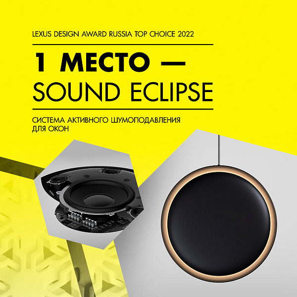 Победителем конкурса стал проект Sound Eclipse дизайнера Шамиля Сахабиева из Москвы. Это система активного шумоподавления для окон с функциями светильника и беспроводной аудиосистемы.