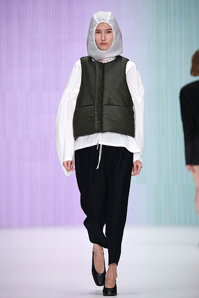 Светлана Докукина посредством своего бренда VIDEVESTE рассматривает одежду как отдельный элемент, способный на самостоятельную жизнь. Первостепенную роль здесь сыграла форма, подчеркнутая монохромными тканями и минимализмом деталей.