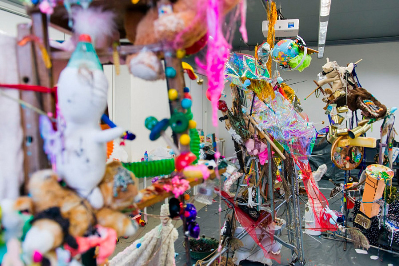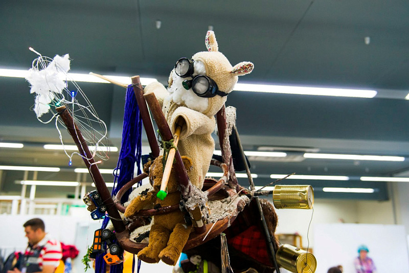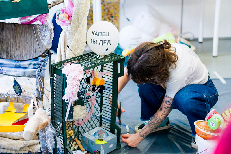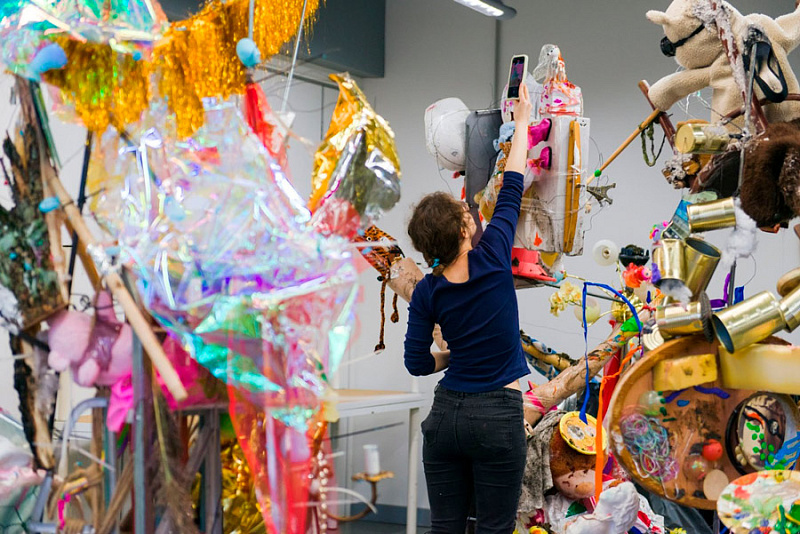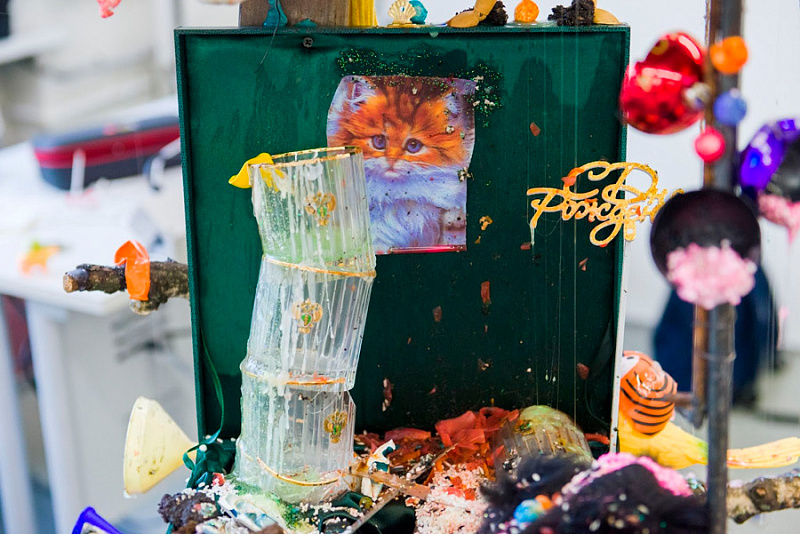 Студенты оживляли принесенные вещи с помощью клея, глины или даже борща. На завершающей стадии участники объединили свои работы для создания полноценных скульптур.