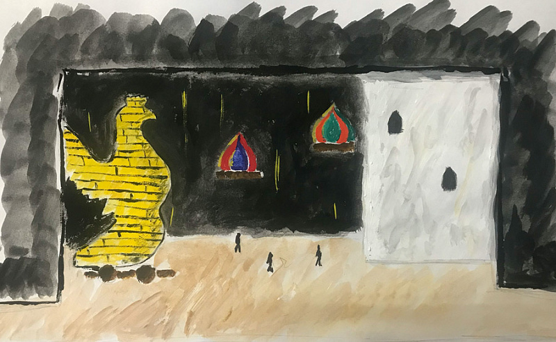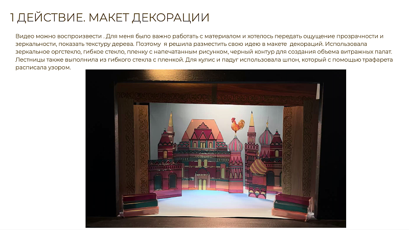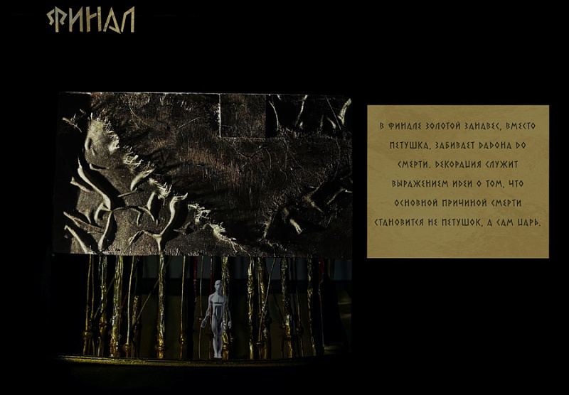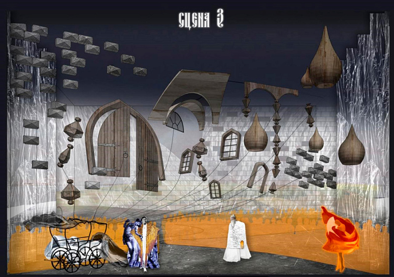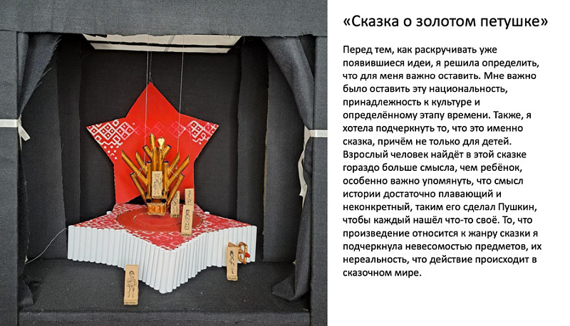 Перед участниками стояла задача: создать сценографические эскизы для сказки А.С. Пушкина «Золотой петушок». По условиям конкурса можно было выбрать любую технику исполнения и жанр постановки, добавить референсы грима и костюмов героев.