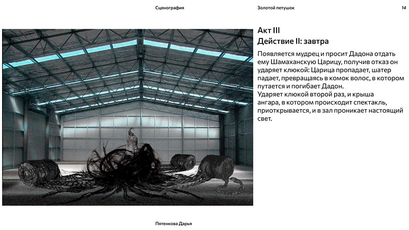 Участники прислали много достойных работ в разных форматах: от цифровых коллажей до физических макетов. Кураторы программы — Галя Солодовникова и Полина Бахтина — оценивали оригинальность проектов, степень погруженности в заявленное произведение, художественное развитие сцен, работу с пространством.