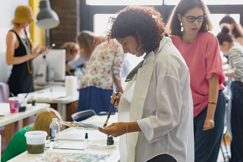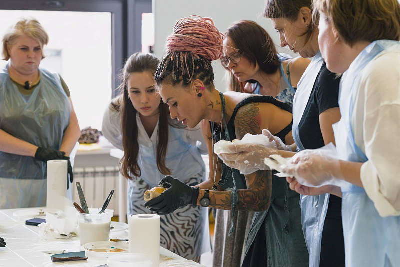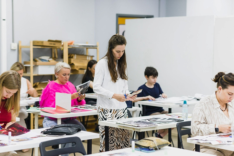 Под руководством Елены Бабкиной участники познакомились с техникой коллажа и провели итоговую выставку работ. В честь летнего времени года преподаватель программы «Декорирование интерьера» Нина Ценных совместно с The Dar Store показала, как сервировать стол с использованием сезонных цветов.