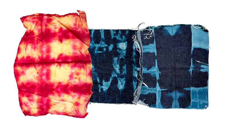«Бличинг — это модификация цвета при помощи отбеливания в техниках шибори. Для этого джинса — или любой другой материал — перевязывается нитками или складывается, а затем покрывается отбеливающим раствором. За счет этого получается паттерн, потому что часть материала отбеливается, а часть — нет», — Нина Вересова.