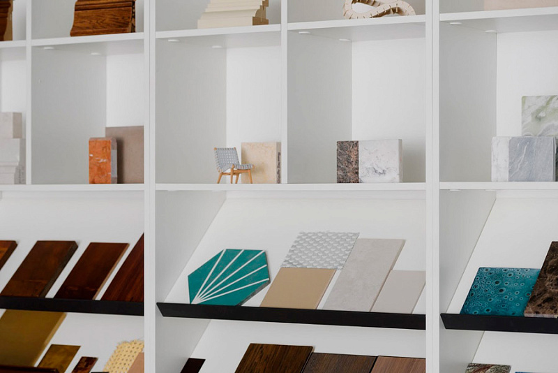 Здесь студенты смогут создавать физические материал-борды для своих проектов. Библиотеку спроектировали кураторы программы «Дизайн интерьера. Базовый курс» с учетом образовательных целей и профессиональных стандартов индустрии, чтобы студенты вживую знакомились с продукцией ведущих брендов и поставщиков — прямо на территории школы.