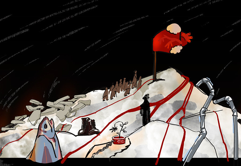 Закончился конкурс на обучение на интенсиве «Основы сценографии»: задачей было создать эскиз сценографии к спектаклю по произведению Владимира Маяковского «Облако в штанах». Кураторы программы — Галя Солодовникова и Полина Бахтина — оценивали оригинальность проектов, отражение духа заявленного произведения, силу художественного образа, работу с пространством.