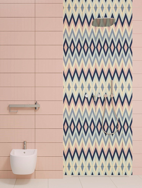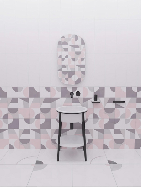 Дизайнеры в своих работах использовали один из главных трендов 2018 года – геометрию. Так, в коллекции Полины Цветковой геометрия сочетается с актуальным пыльно-розовым оттенком. По признанию автора идеи, «женственность пудрового розового уравновешена брутальностью светло- и темно-серых тонов, которые работают нейтральным фоном, в то время как розовый является небольшим акцентом. Он, «как румянец на щеках», добавляет свежести любому помещению».