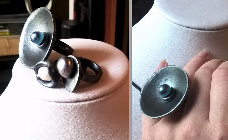 Это достаточно логичное следствие того, что ювелирный дизайн преподавался им не как часть ремесла. В традиционном ювелирном деле есть мастер, который очень хорошо понимает технологию производства и умеет немного рисовать. Мы же сфокусировались на том, что дизайнер — отдельный, самостоятельный специалист, владеющий канонами дизайна и умеющий их применять в ювелирной области. Поэтому у студентов получились очень необычные, яркие вещи.