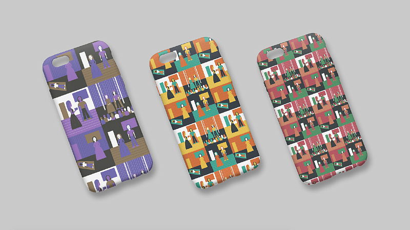 Затем каждый ученик взял миф или легенду, на основе которых будет делаться узор. Третьим этапом была работа с переводом текста в изображение — мы постарались уместить всю историю или её значимую узнаваемую часть в одну повествовательную иллюстрацию. Четвертым этапом была разработка самого узора из получившейся картинки. Наконец, финальным шагом было применение получившихся паттернов к разным объектам, материалам и пространствам.