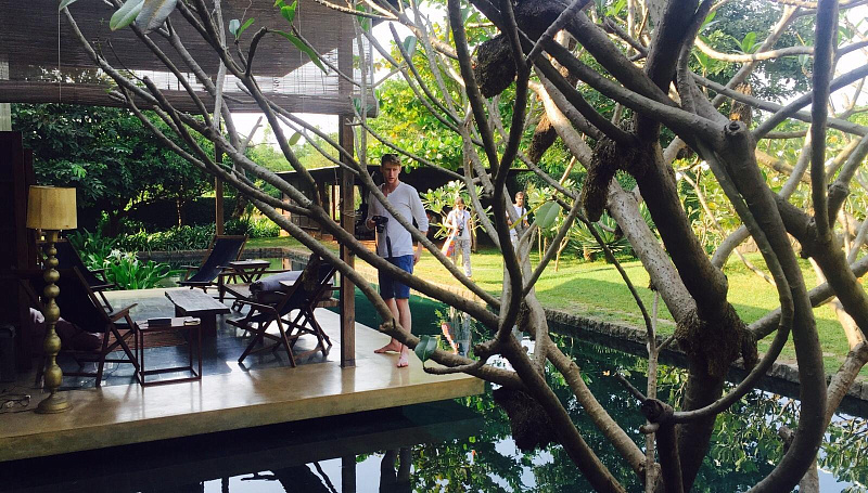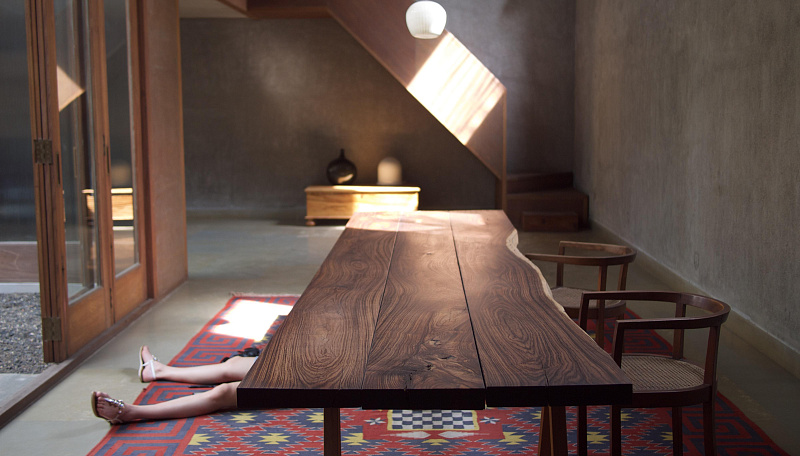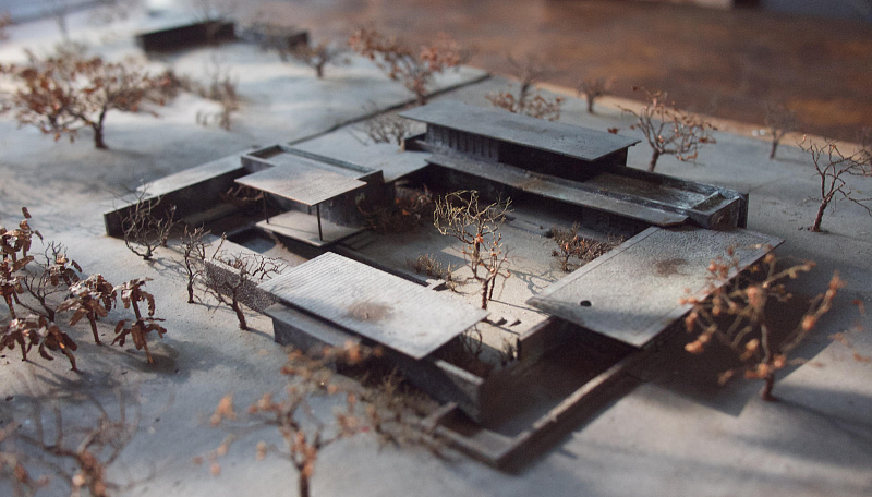 «Ты входишь в непримечательные ворота на одной из оживленных улочек Мумбая, и попадаешь в традиционный индийский дом. Вернее, оказываешься в самом его центре – во внутреннем дворике, окруженном крыльями здания со всех сторон, с изогнувшимся деревом посередине. Такая конструкция называется «налукетту» и она повсеместно используется в архитектуре частных домов в Индии. На входе нет ни указателя, ни вывески, поэтому поначалу кажется, что ты попал в обычный жилой дом, и даже минималистичный, но уютный интерьер кажется домашним, в нем царит атмосфера уединения и интимности. На самом деле, это место в целом показалось своего рода убежищем в условиях шумного и суетливого города, где ты можешь выбрать степень уединения с помощью различных перекрытий, раздвижных деревянных окон и створчатых дверей, или переместившись с более открытого первого этажа на второй, в котором есть разграниченные зоны. Более того, все стеклянные элементы дверей и окон граненые, что только подчеркивает ощущение личного пространства, так как через них свет, зелень, городской пейзаж и другим детали города кажутся размытыми, создавая иллюзию, будто внешнего мира и вовсе не существует. Наслаждаясь атмосферой уединения, столь непривычной для динамичного города, ты не сразу понимаешь, что различные архитектурные модели всевозможных масштабов и степени проработки, расставленные в комнатах, не являются декоративными элементами, и что эти комнаты не жилые, и что все люди, которых ты встречаешь – кто-то рисует или читает, кто-то работает за компьютером, кто-то занимается чем-то в саду – не являются членами одной семьи, и, наконец, что ты попал не в жилой дом, а в офис Studio Mumbai».