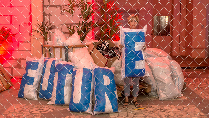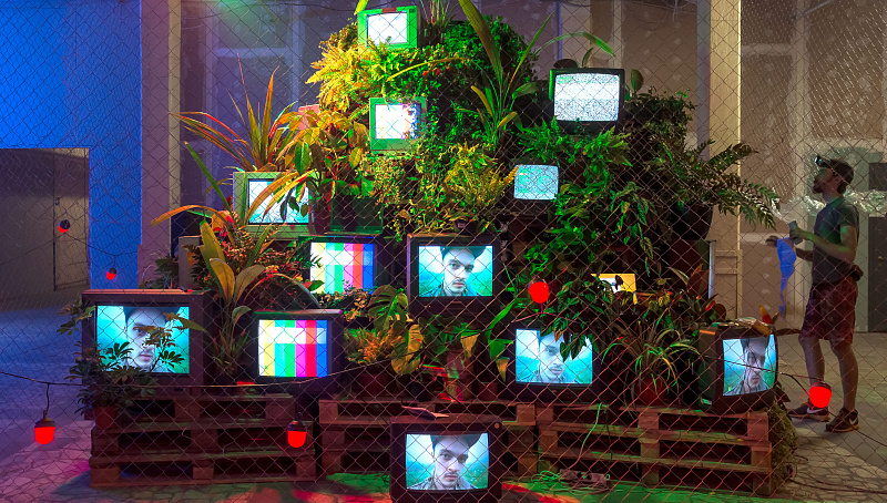 Осталось два ключевых элемента — пирамида из телевизоров с проросшей через них зеленью и свалка строительного мусора с элементами античности.