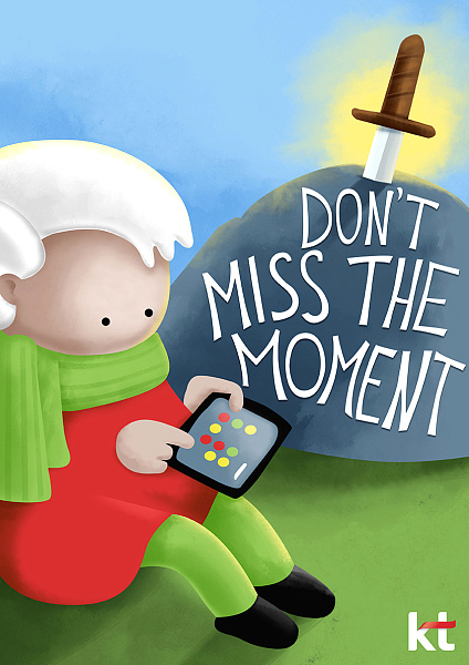 Наталья Спивак, Любовь Метелица и Елена Золотарева создали плакаты под общим названием «Don’t miss the moment», призванные обратить внимание на проблему зависимости подростков от смартфонов. Заказчиком, предоставившим бриф для конкурса, выступила корейская телекоммуникационная компания KT.