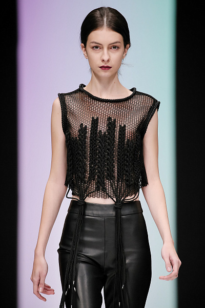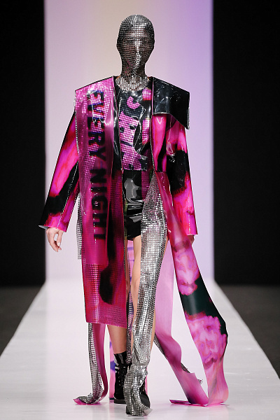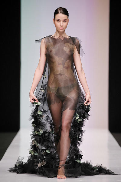 Анастасия Белкина в своей коллекции «Toxic» исследует темную и опасную силу женщины, которая способна соблазнить мужчину своей убедительностью, притягательностью, магнетической аурой, а затем безжалостно бросить, уничтожив его ядом. Автора вдохновило исследование различных видов яда, что послужило основой для создания принтов. Слои ткани, на которых напечатан принт, как бы подчеркивают сложность, двуличность характера и особые черты роковой женщины.