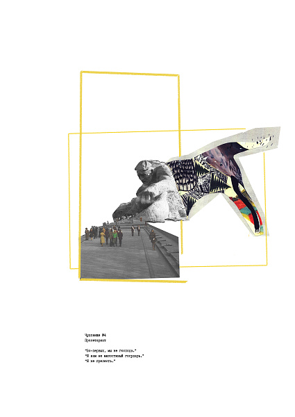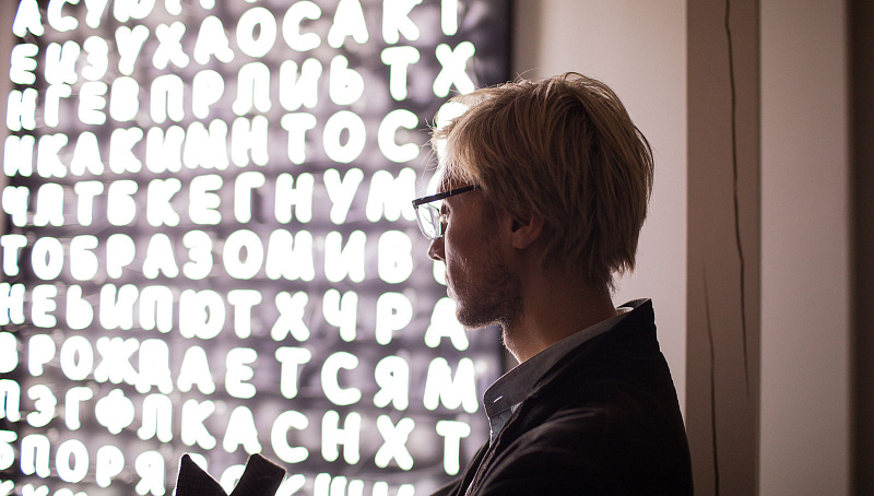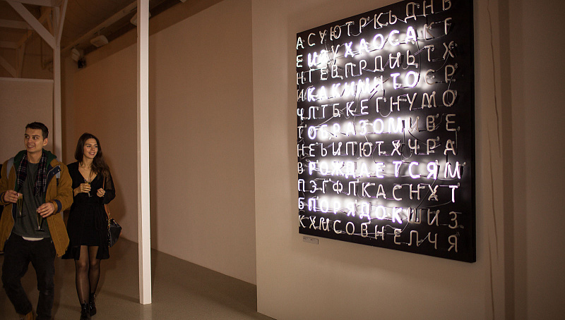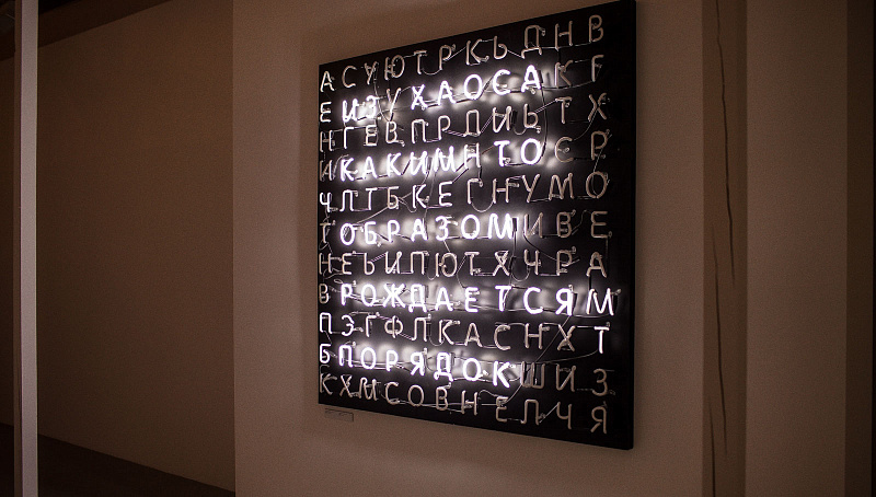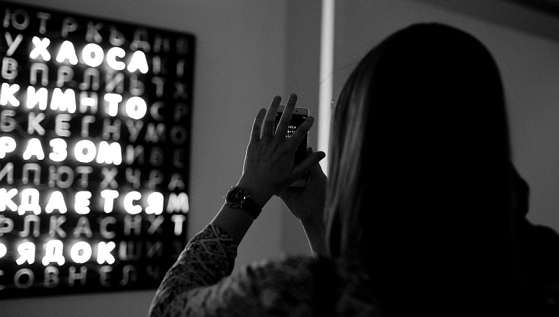 Мария Михайлова разработала световую конструкцию с литерами, которая высвечивая определенные буквы, формировала фразы-цитаты. Цитаты были взяты из произведений Булгакова и укорочены, чтобы соответствовать формату табло.