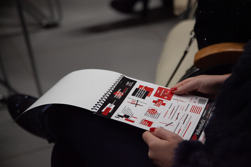 Организаторы получили много оригинальных работ (некоторые участники конкурса даже предложили несколько концепций) и выбрали победителем Алену Жокину, выпускницу программы «Визуальные коммуникации». В своей работе Алена использовала идею дороги, которая может привести к чему-то новому и интересному. Она может быть разной формы, размера и цвета, что позволяет отразить разнообразие и адаптивность концепции. А выступления спикеров TEDxVolhonkaSt – это своего рода пешеходный переход, возможность подумать и перейти на другую сторону дороги.