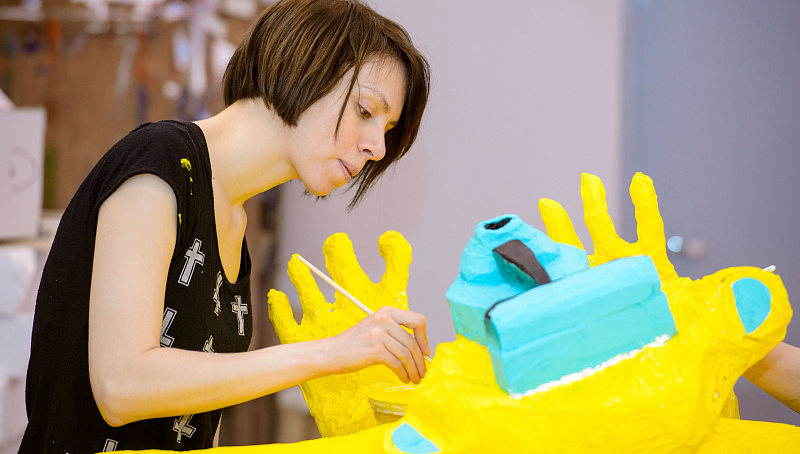«Во-вторых, для нас важно сразу показать, что об иллюстрации мы говорим в самом широком смысле. В первый же день мы отбираем у студента карандаш и даем пассатижи. Для многих возможность применить свои навыки в объеме и в таком масштабе становится большим открытием, заставляет пересмотреть все, что делалось до курса. Наконец, на этом проекте, в особенности на этапе работы над эскизами, закладываются ключевые моменты в работе с формой. Объем вообще очень важный инструмент, мы его дальше используем в работе над портретом, а многие возвращаются к нему уже на дипломе».