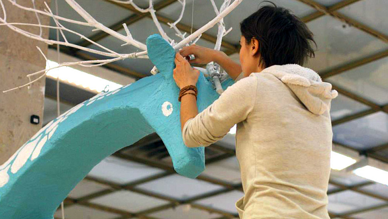 Необычные животные — это традиционная для студентов первого курса тема, но каждый год иллюстраторы рождают все более неожиданные идеи. Работа над скульптурами, каждая из которых по условиям участия должна быть не менее двух метров в длину, продолжалась три недели. Под руководством куратора курса Виктора Меламеда, студенты сначала готовили объемные эскизы, а после доработки идей, в командах из нескольких человек воссоздавали получившиеся скульптуры в полную величину. Для этого художники использовали не совсем привычные им инструменты и материалы: дерево, проволоку, термоклей, отвертки, молотки и другие. Именно работа с применением нестандартных материалов и техник в масштабе крупных объектов — ключевая идея такого формата практики для студентов.