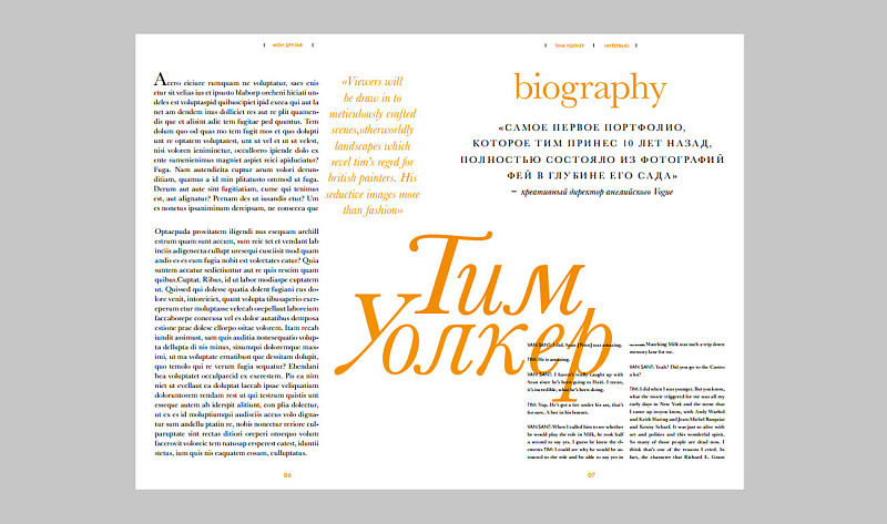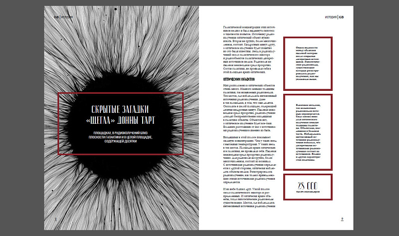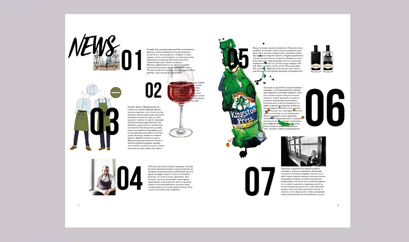 Параллельно с разработкой идеи, концепции, тем, названия и слогана, решался ряд технических вопросов — выбор бумаги, формата, корешка. Отдельное исследование помогло определить стиль, выбрать шрифты для журнала. Второй большой блок работы — непосредственно верстка. Для проекта необходимо было сделать фичер, несколько новостных полос, фото-материал и рубрику.
