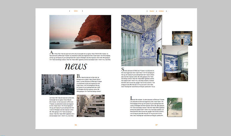 Самая интересная часть проекта — верстка самого журнала. Задача стояла выполнить несколько вариантов обложки, дробные новости, фичер, фотографический материал».