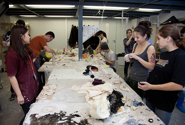 Работа в гончарной мастерской помогает студентам различных специальностей Школы научиться работать с новыми материалами, раздвигая границы творческих экспериментов. Используя ресурсы мастерской, студенты получают практический опыт работы с глиной, керамикой, гипсом и учатся создавать литьевые формы, макеты, скульптуры, а также занимаются ручной лепкой, облекая свои креативные идеи в конкретную художественную форму*.