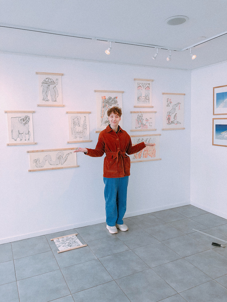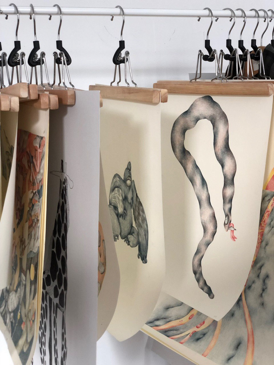 Я выставляла 15 новых работ в графике и цвете, рассказывающих про сильных женщин, дурных зверей и моё умение обращаться с формой. Это длинный проект: работа с пространством, новый формат и путешествие.