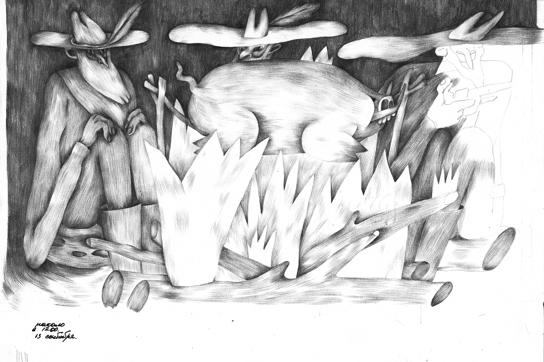 Мы сошлись ещё во время учёбы в Британке и на разных этапах нашего общения замечали, что мы то больше, то меньше похожи друг на друга в иллюстрации. В конце концов стало очевидно, что у нас схожие вкусы, интересы и подход к работе, и решили создать третьего художника — «Акулку».