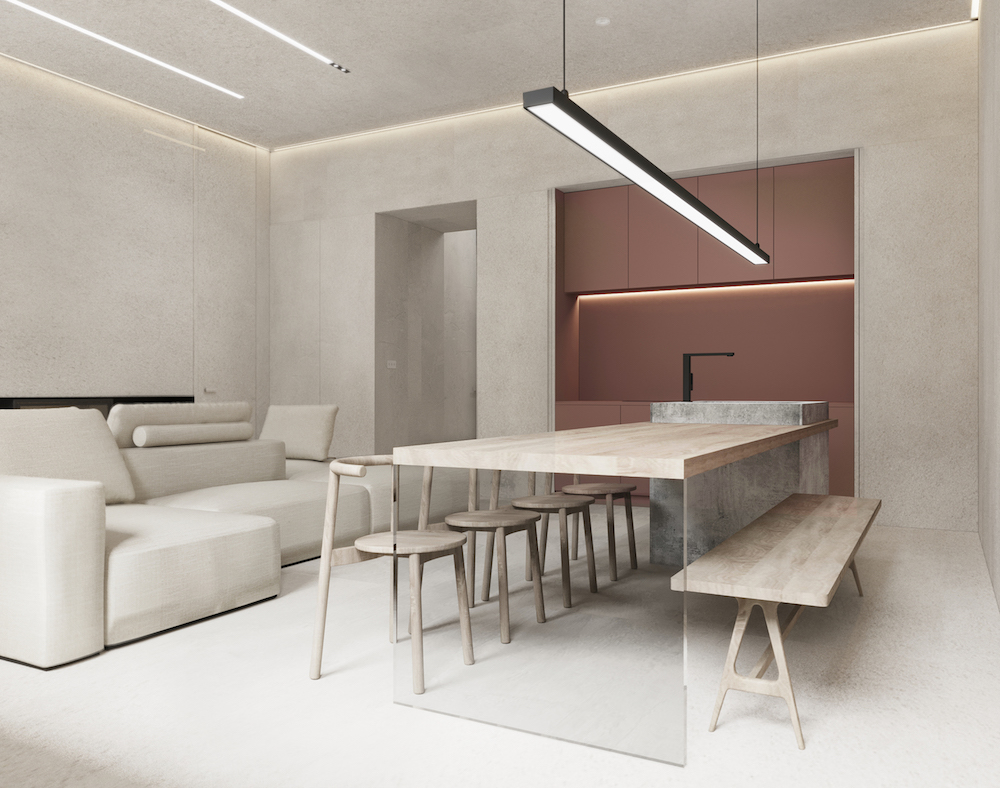 9.18 Бюро». 9.18 потому что, во-первых, это дни нашего рождения, а во-вторых, мы со Светой как раз познакомились в девятом месяце в 2018 году — поступили в Британку. Наше направление — это минималистичные интерьеры. Мы любим монохромность, любим делать акценты. Но все-таки решили сделать такой более пригодный для жизни минимализм — не совсем аскетичный, чтобы все функции были соблюдены, чтобы людям было не только красиво, эстетически приятно, но и удобно. Пока мы делаем по большей части жилые интерьеры. Есть некоторые проекты общественных пространств, а в дальнейшем нам больше хотелось бы заниматься как раз общественными интерьерами. Мне очень хочется сделать отель в горах.