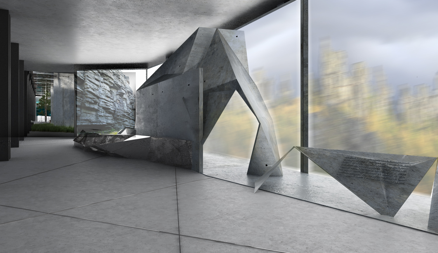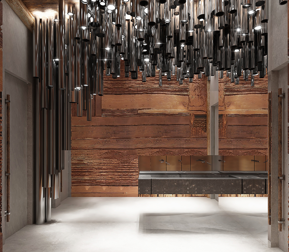 Саму концепцию мы назвали «Граница». Тут все логично: Екатеринбург (город, для которого проектировали) находится на границе Европы и Азии, аэропорт — граница между небом и землей, между странами, иногда даже между жизнью до и после. Визуально решили отобразить как границу между природным и антропогенным через геометрию, материалы, наполнение, а якорем послужила история о малахитовой шкатулке. Так, плавные природные формы находятся в симбиозе с прямыми, очевидно созданными человеком.