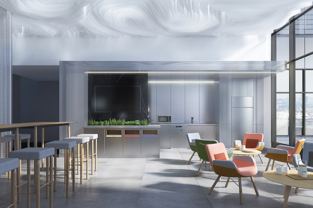 Отдельно хотелось бы рассказать о комнате для молитв. Обычно принято устраивать такие помещения только для представителей одной религии. Тут же особенность в том, чтобы предложить молельню для всех религий. Это высокое помещение, стилистически напоминающее пещеру (как отсылка к первоисточнику), с единым центральным объектом, излучающим свет (символизирует, что Бог един), стилизованные акустические «камни» развернуты в разные стороны с учетом, что христиане молятся на Восток, мусульмане в сторону Мекки, евреи в сторону Земли Израиля. Вся подсветка и материалы создают атмосферу таинства, тишины и уважения.
