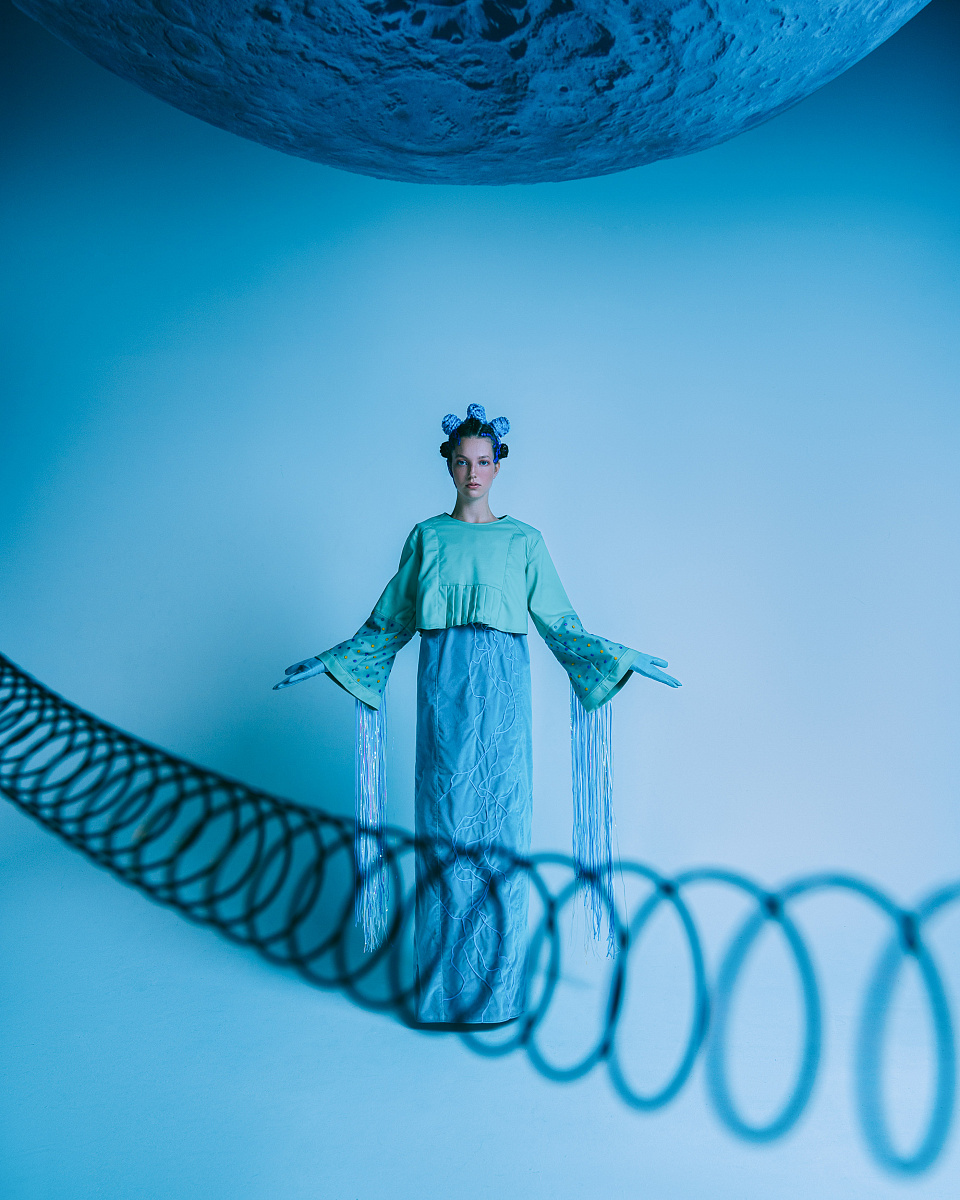 Мой дипломный проект называется NEW WORLD. Это коллекция не просто костюмов, а образов людей, живущих в новом мире, с новыми традициями, новыми устоями, новыми мечтами и целями. Мне хотелось создать образ нового народа, который, возможно, появится в далеком будущем. Интересно, что при разработке коллекции я много думал об образе жизни людей в горной местности и хотел создать футуристичную одежду с налетом советского конструктивизма.