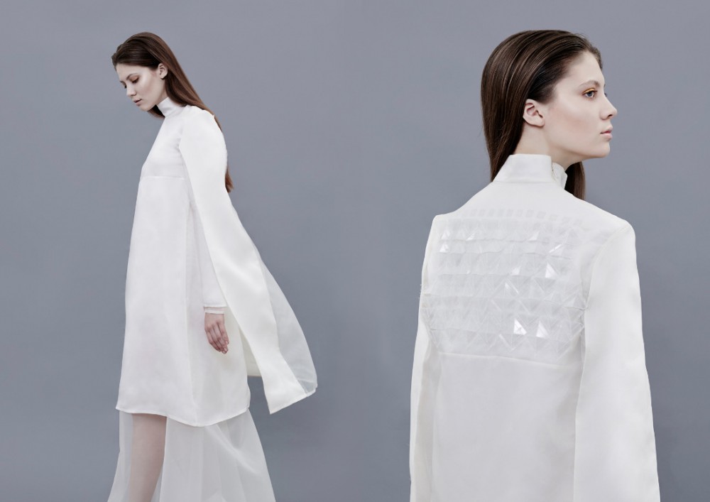 Когда я пришла в школу, я не умела шить, поэтому самым сложным был первый проект, когда нам нужно было создать концептуальную белую рубашку. Через полгода обучения я смогла сшить очень сложную конструктивно модель рубашки, которая была вдохновлена архитектурой и сама напоминала скульптуру. Для меня до сих пор это самый памятный проект. Также я горжусь своей выпускной коллекцией- это была первая полноценная коллекция, она очень концептуальная, в ней много декора и ручной работы. И она вдохновила группу студентов из МШК на создание fashion фильма, который вошел в 2015 году в программу Берлинского фестиваля fashion фильмов.