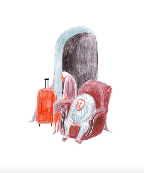 Эти две работы из серии «уставшие люди» были сделаны в начале пандемии, когда мы все неожиданно уселись в он-лайн и рисовали свои интерьеры, а потом каждый должен был наполнить чужой интерьер своими персонажами. Хотелось передать чувство запертости, тоски. Вроде бы удалось. Очень люблю эту серию. Кажется, она всё ещё не теряет своей актуальности.