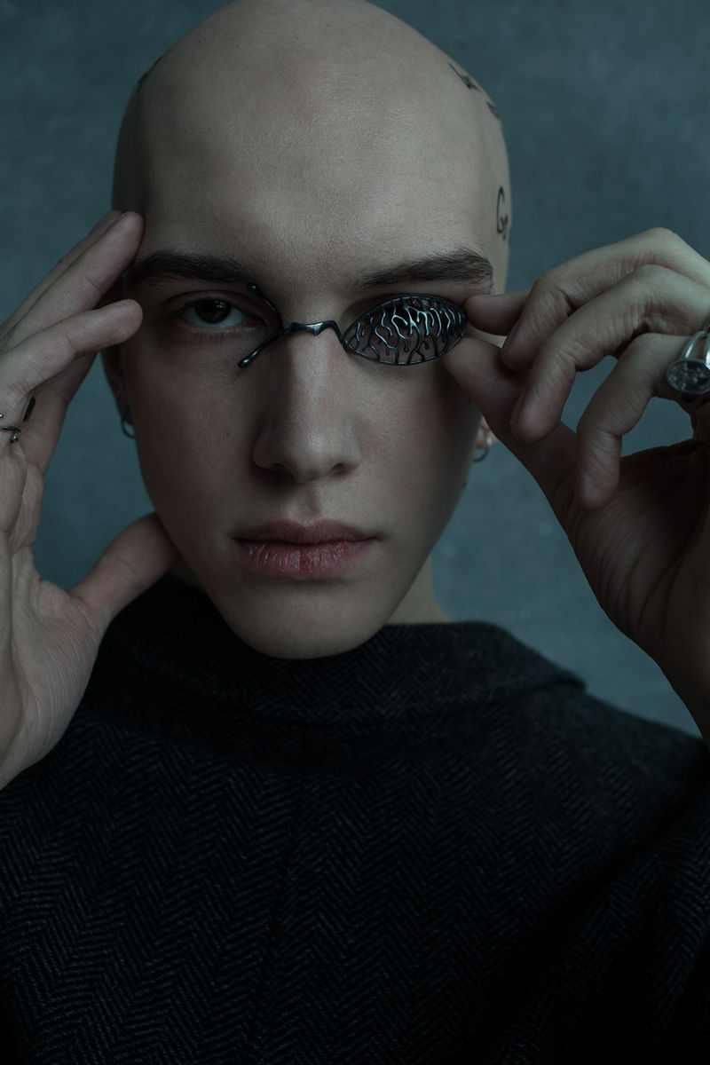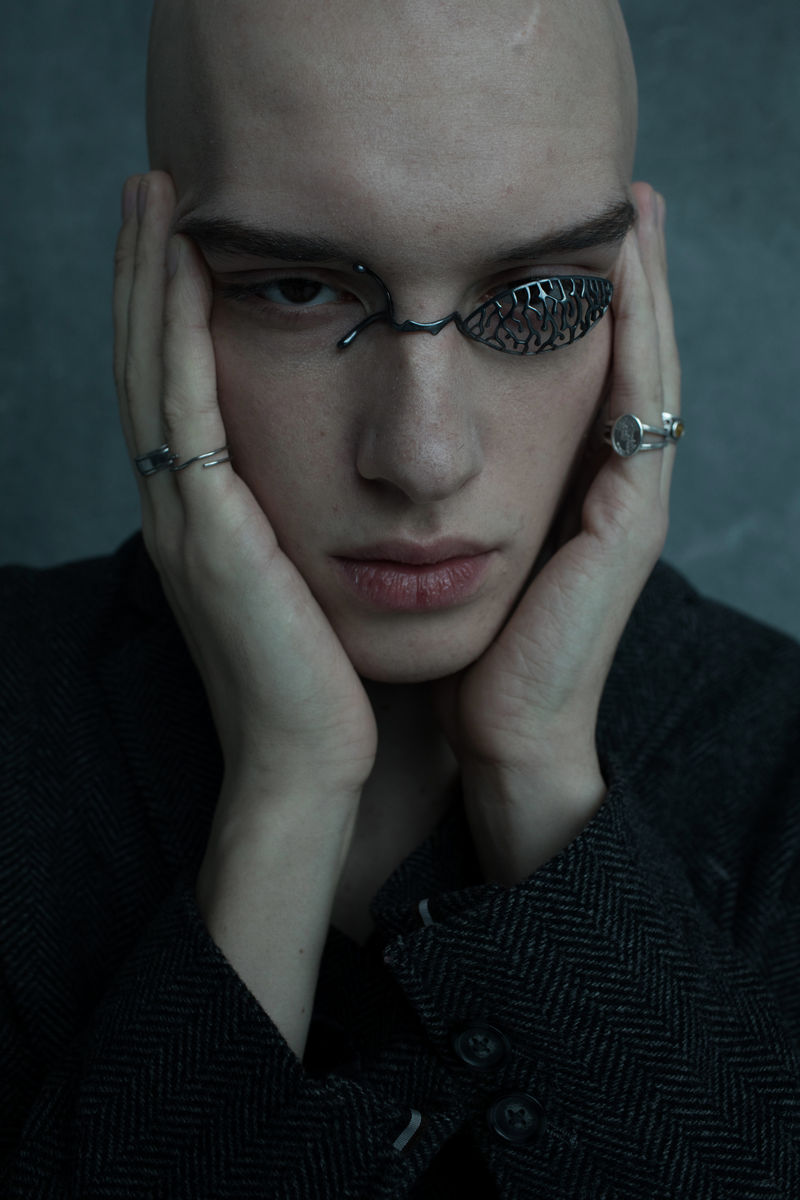 Человеку сейчас как никогда нужна защита, в первую очередь от самого себя и вовлечённости в соцсети и гаджеты. Ювелирное третье веко — приспособление, которое возвращает в «здесь и сейчас», собирая растраченные на информационный мусор кусочки внимания. Украшение заставляет присматриваться, вглядываться в прекрасный окружающий мир, как если бы вы смотрели сквозь щель.